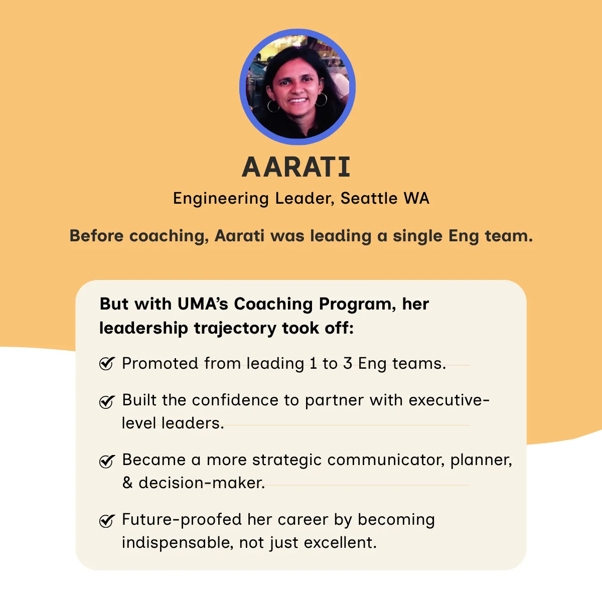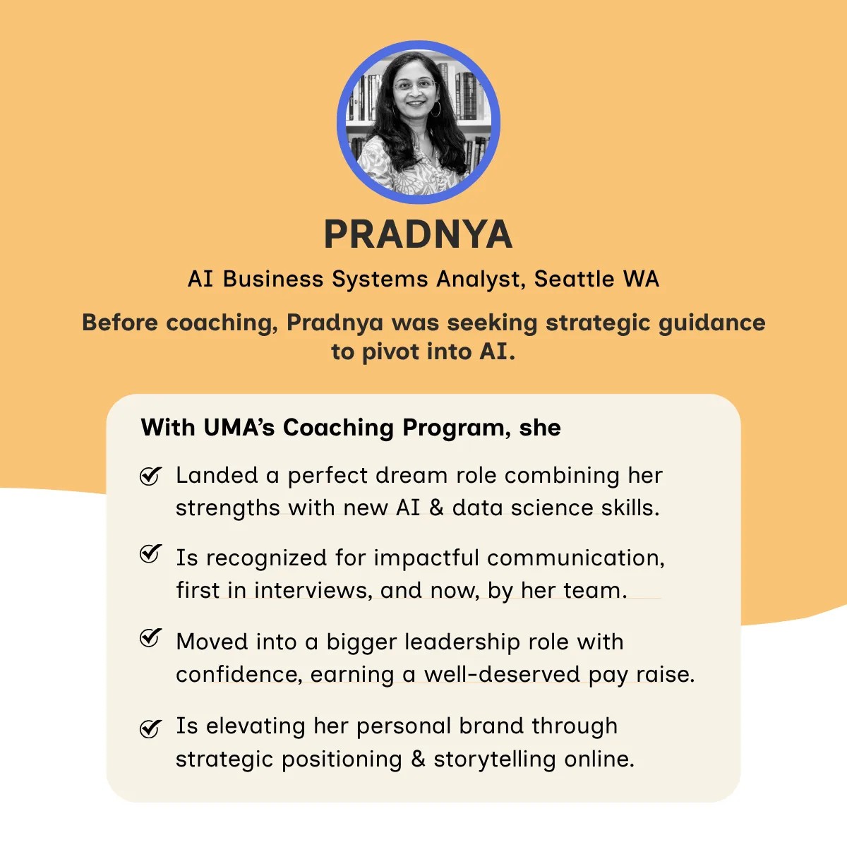 For the first time, Uma is opening a few exclusive spots in The Sought-After Leader Experience™, her transformational six-month cohort for ambitious professionals who want to stay trusted, relevant, and in demand no matter what changes come next.
